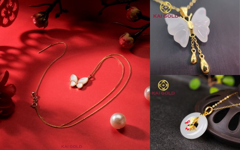 Mẫu dây chuyền được yêu thích điển hình như: Mặt Dây Chuyền Hồ Điệp Ngọc Vàng 24K, Mặt Dây Hồ Điệp Vàng 24K Cẩm Thạch Bạch Ngọc,…