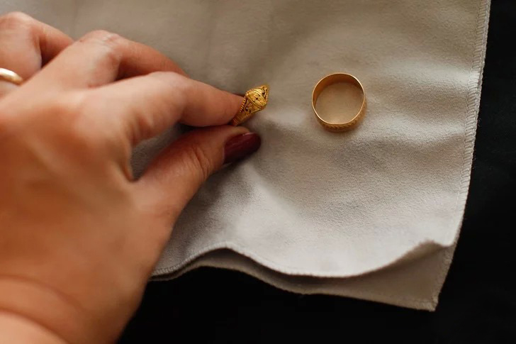 - Bước 5: Sau đó, lau khô trang sức bằng vải mềm và đặt trang sức vào một miếng vải để chúng được hong khô trước khi sử dụng.