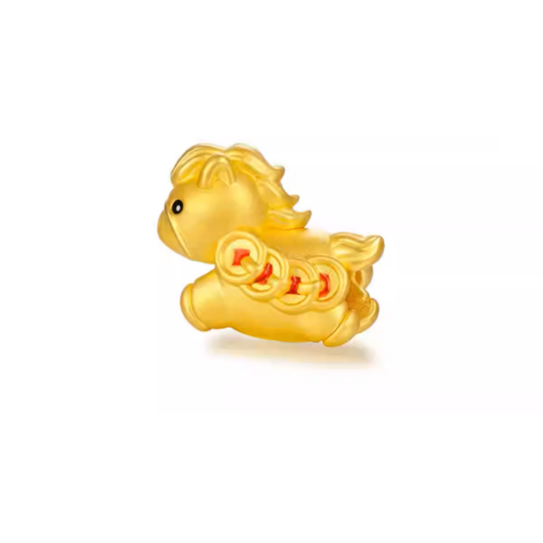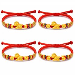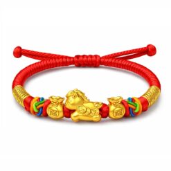 Thiết kế vòng tay nổi bật với charm Kim Ngọ 2026 được chế tác tinh xảo, tạo hình sinh động kết hợp cùng các charm vàng tài lộc, mang đến tổng thể hài hòa và bắt mắt. Sự kết hợp giữa dây đỏ thủ công và sắc vàng ánh kim tạo nên vẻ đẹp ấm áp, trẻ trung nhưng vẫn giữ được nét sang trọng tinh tế, cùng ý nghĩa phong thủy may mắn và thịnh vượng